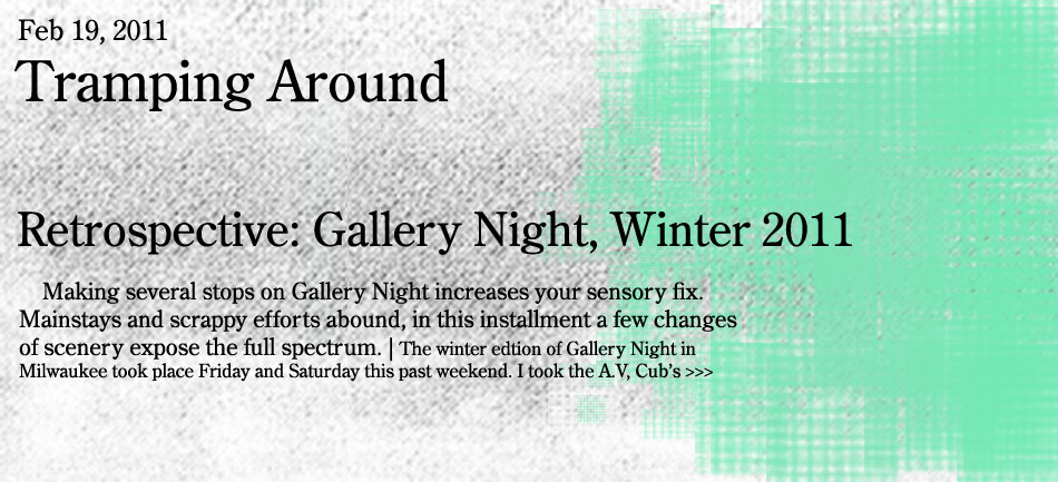 The winter edition of Gallery Night in Milwaukee took place Friday and Saturday this past weekend. I took the A.V. Club’s lead on a couple of art exploits seen on Friday night, but ended up off the trod path and left one destination on my to do list.