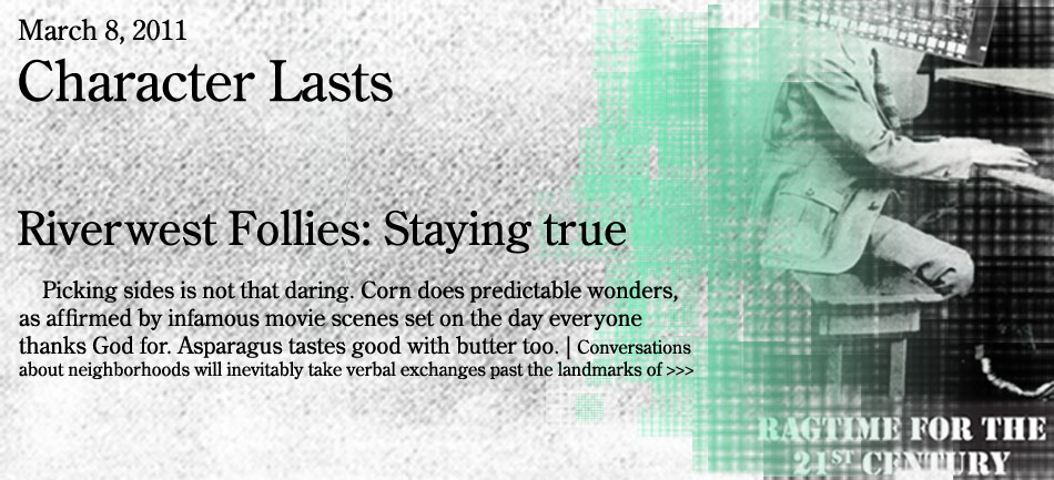Parents with their kids, romantic items clutching hands, costumed characters, modest bakers and craftspeople alike tossed aside being hip, image-conscious, oblivious, paranoid and/or cynical and embraced having a good time. The kids helped clarify the people part of the neighborhood equation, by collectively declaring “to hell with being entertained!”, freely running around during a skit promoting Riverwest Currents. The kids get it right most of the time: the running never ceased. The next time Riverwest comes up, know that the modest and socially conscious working-class roots of the neighborhood still thrive without pretense.