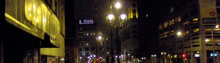 Cold rain deepened my resolve to visit the Grand Avenue Borders blow-out sale, a trip that I plotted and canceled several times. Who am I to separate the uncanny combination of books and rain? The partially burned out ‘O’ in the marquee sign atop the building also helped. Until Borders announced its closing I never noticed, but since that point my fascination with the failing sign would not relent and in part prompted my want to take photos of downtown (along with the scenery on Michigan Avenue one night, which my camera couldn’t make look as cool as my eyes could).