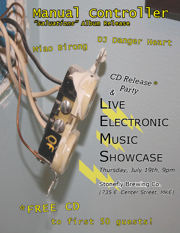 Befitting the growing appetite for electronic music in Milwaukee cultivated by events like WMSE‘s 414Melt and shown by the great reception Teisto got at Summerfest, Manual Controller will brandish his newly pressed compact disc on top of a live performance at Stonefly Brewery Thursday July 19th at 7p, after Stonefly’s notoriously bearable dinner time. In the mean time, you can test drive the album or get the whole schwabang on Bandcamp.