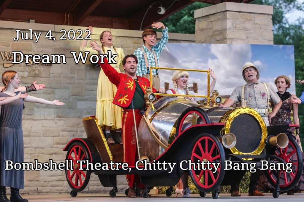 Bombshell Theatre’s production of Chitty Chitty Bang Bang, performed outdoors at the Rotary Stage in Wauwatosa’s Hart Park, hit all the marks one wants to see in a classic production, inventive staging, energetic, well-versed, in-step and committed performances, and on-time humor!