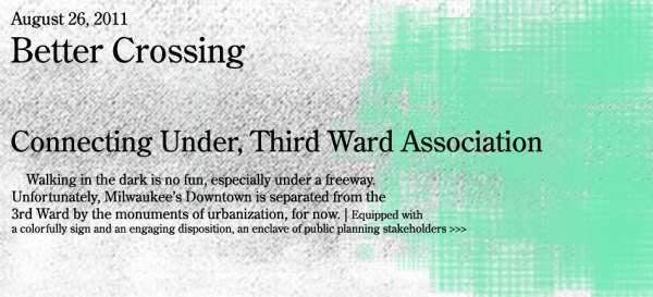 Equipped with a colorfully signs and an engaging dispositions, an enclave of public planning stakeholders took over the corner of Wisconsin and Water Street, generating a little commotion to attract public participation. The Historic Third Ward Association is planning what to do about that dark nebula under the I-794 overpass that connects Downtown to the... Continue Reading →